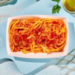 • MENU CARNE: primo al pomodoro + cotoletta + patate fitte + pane + acqua